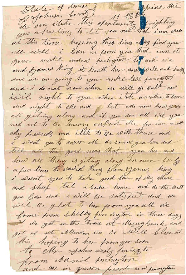 Pennington Letter - This is a letter written from Daniel Pennington to his