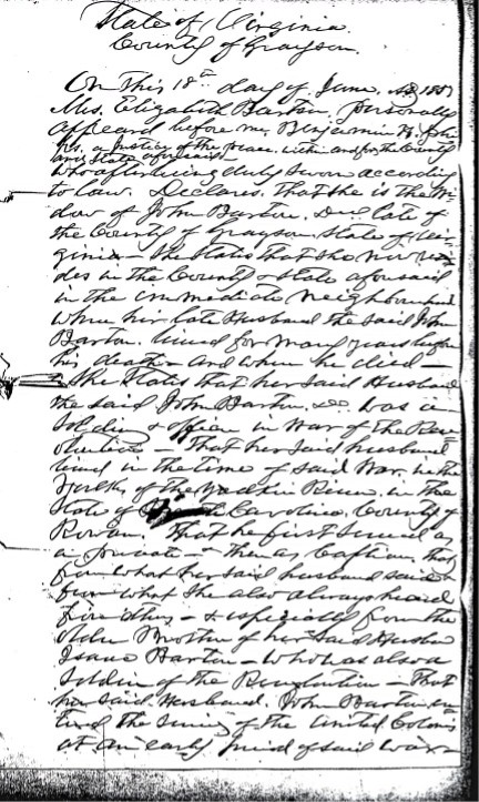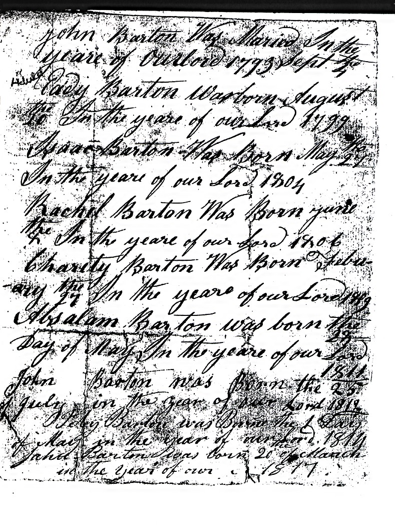 Bible -Lists children of Elizabeth Pennington & John Barton.