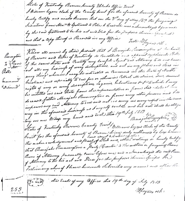 other writings do hereby certify that Benajah Pennington a party (Grantor) to