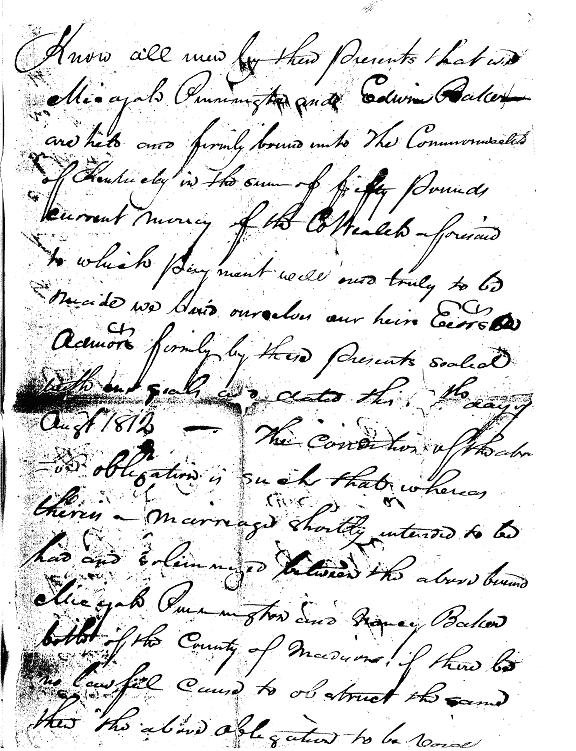 Copy of the Marriage bond between Micajah Pennington and Linthey Jones.