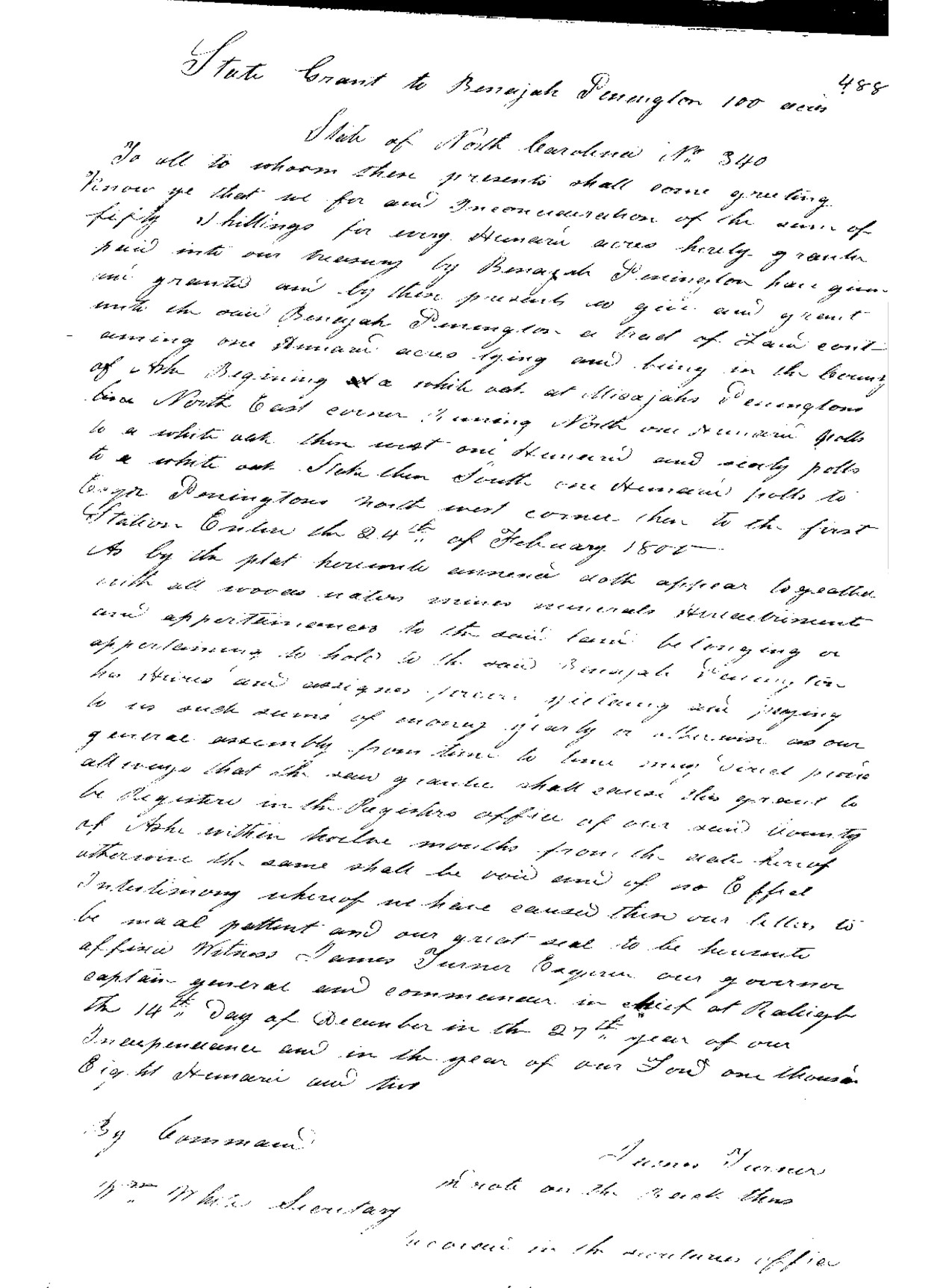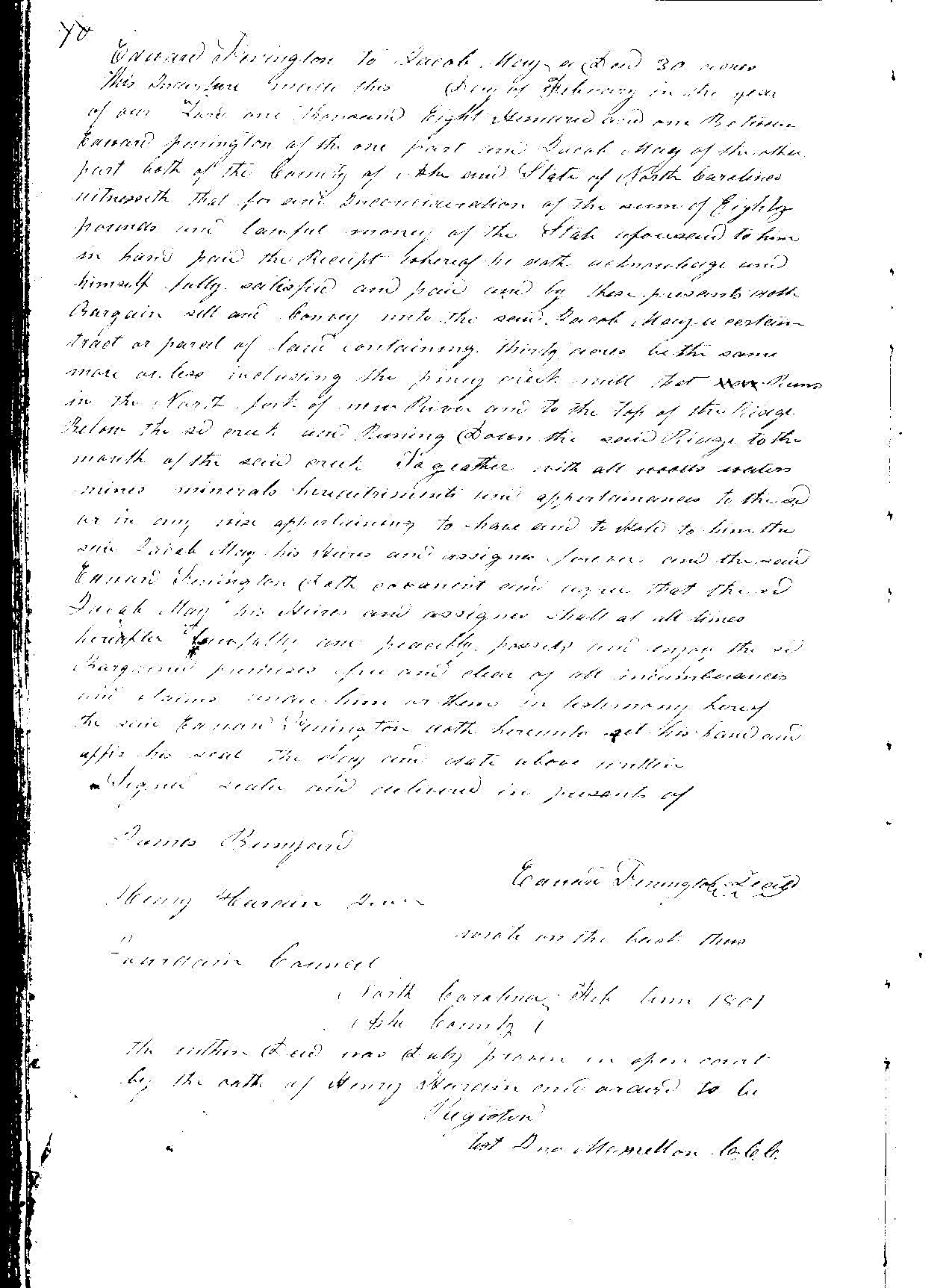 recorded on 30 Oct 1801. It is a land grant to Micajah Pennington.