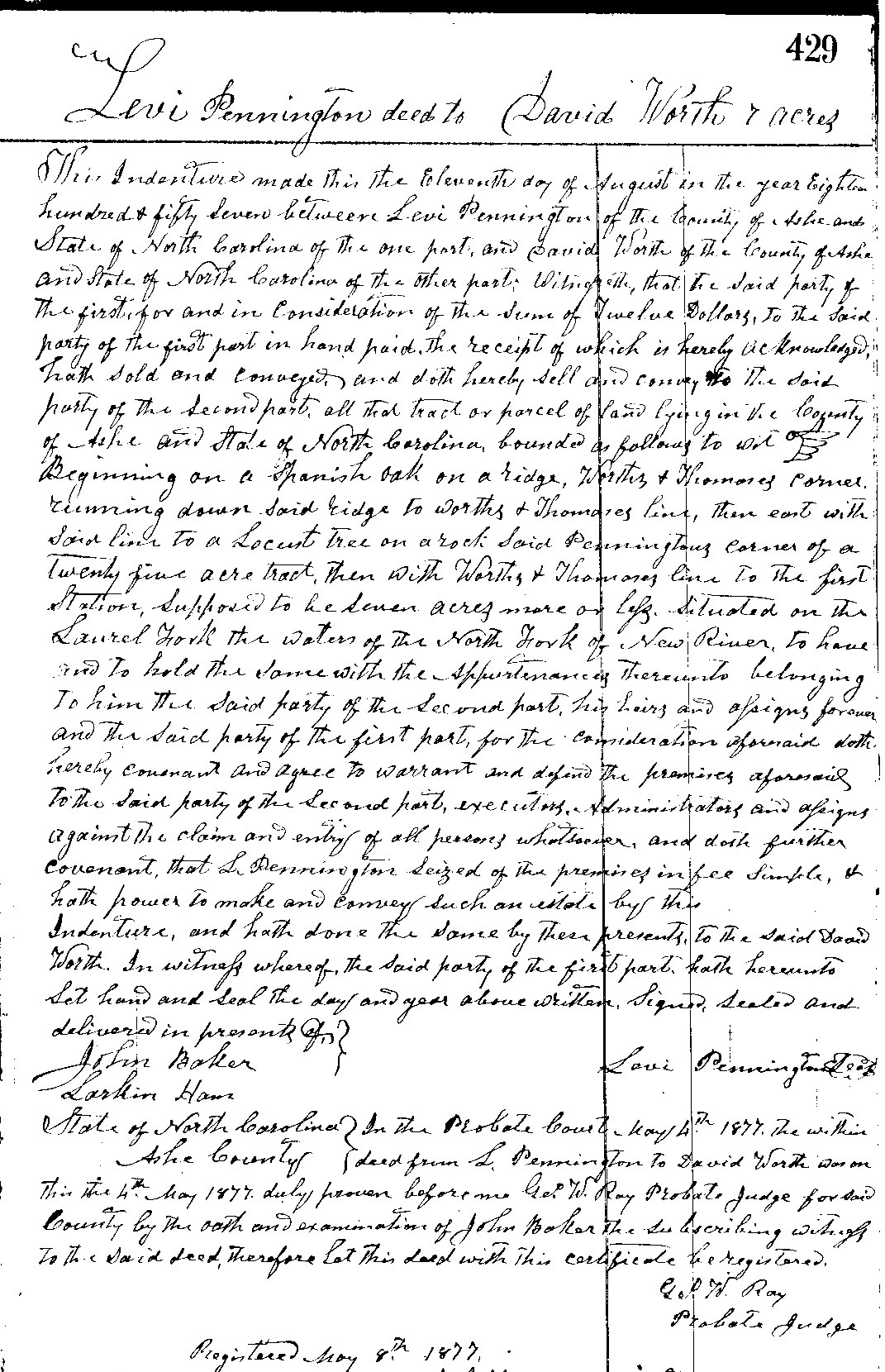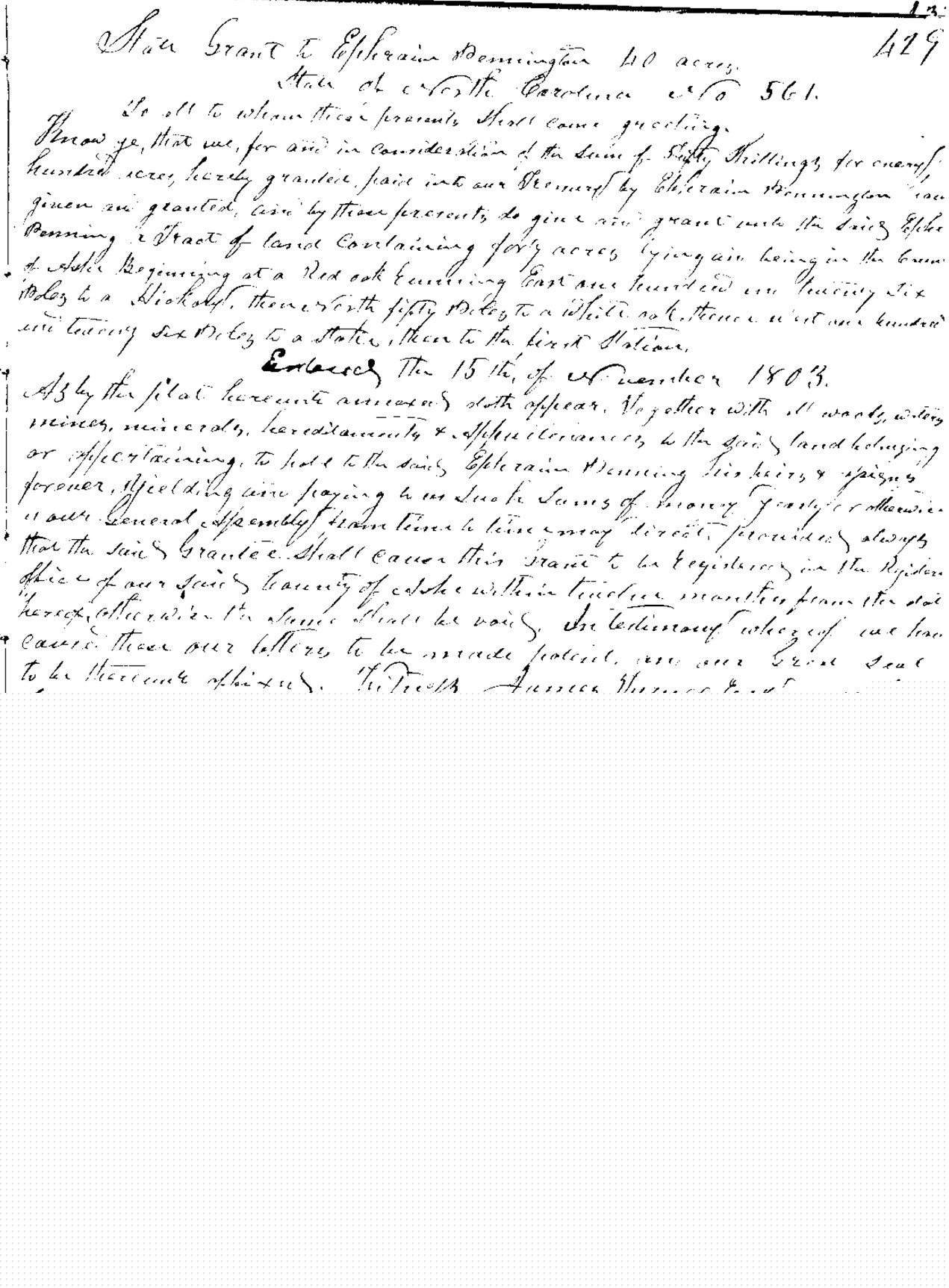 Pennington, No. 561 recorded on 15 Nov 1803 in Book B, Pg. 429. |