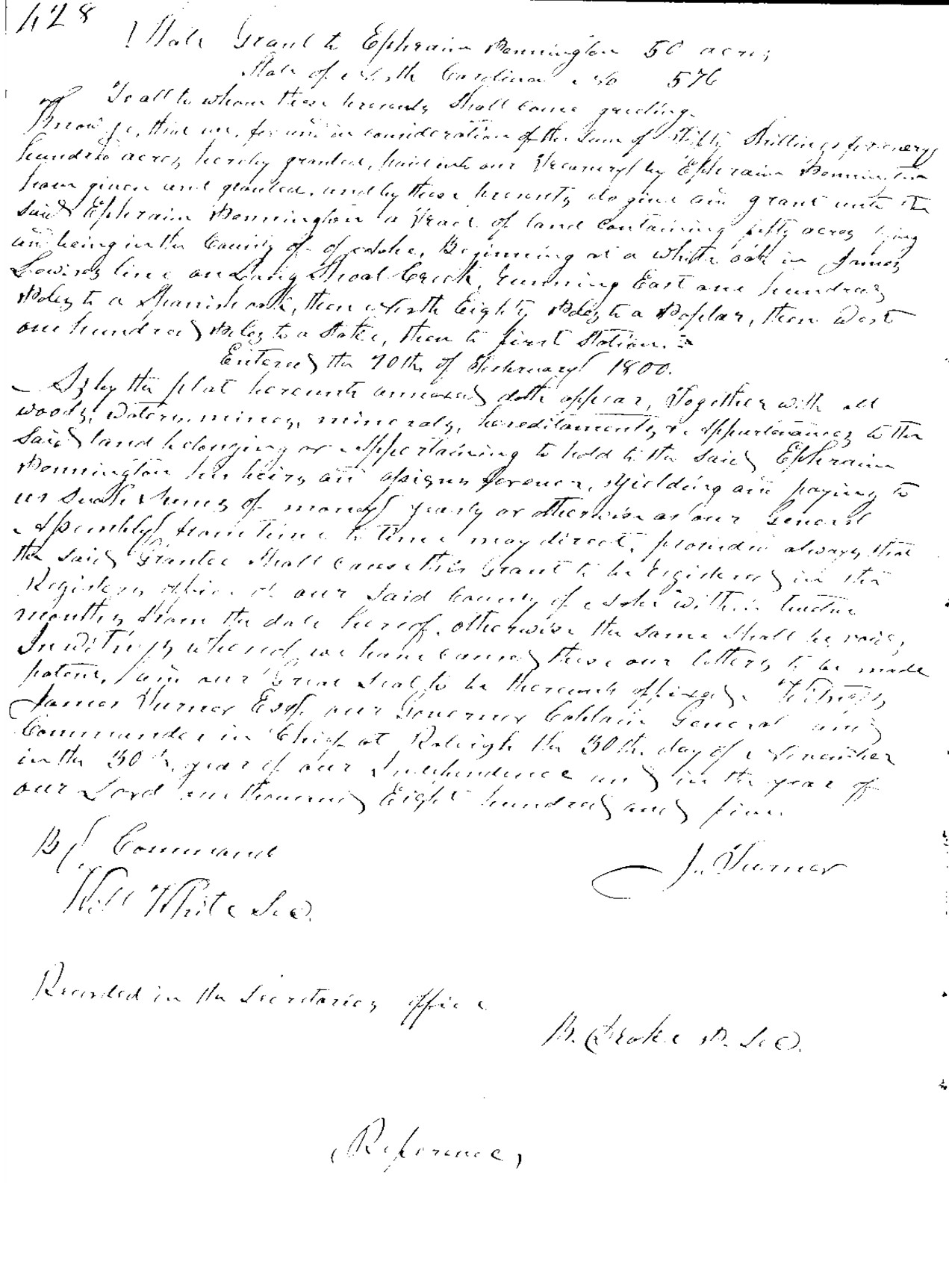 recorded on 20 Feb 1800. It is a land grant to Ephraim Pennington.